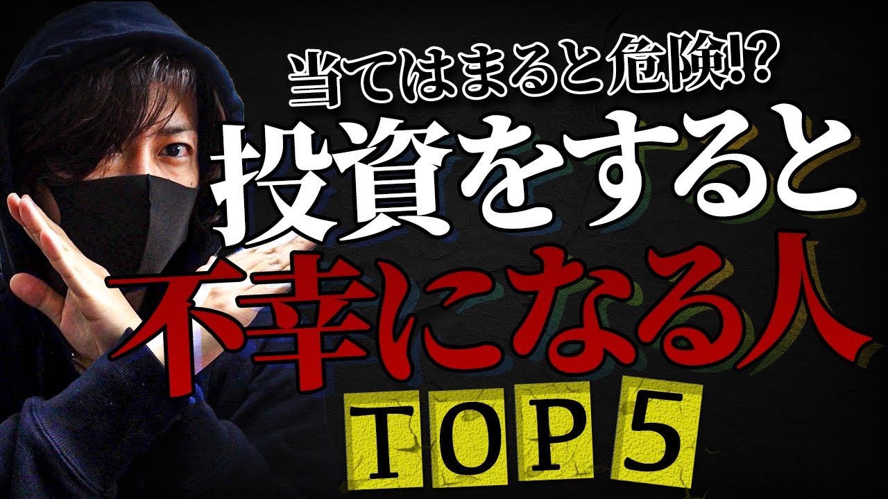 投資で不幸になる人の特徴 TOP5 投資家メンタリストSai 2020/12/24 第1位:真面目すぎる人 第2位:欲望に勝てない人 第3位:すぐ諦めてしまう人 第4位:感情の起伏が激しい人 第5位:即金を求める人